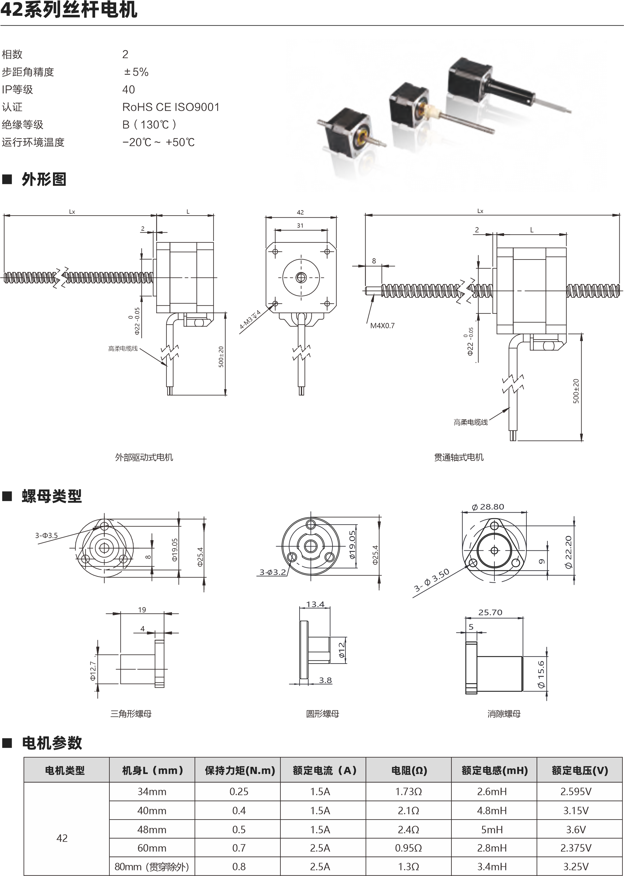 立成42機(jī)座外驅(qū)式絲桿電機(jī)是一種采用42機(jī)座安裝,外置驅(qū)動(dòng)器的絲桿電機(jī)。其特點(diǎn)包括: